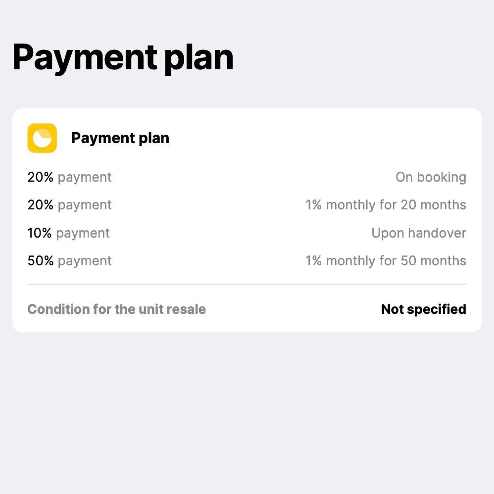 Rent-to-own payment plan. This plan is designed to align with rental yields for equity build-up and is projected to provide a 20% Return on Investment (ROI)