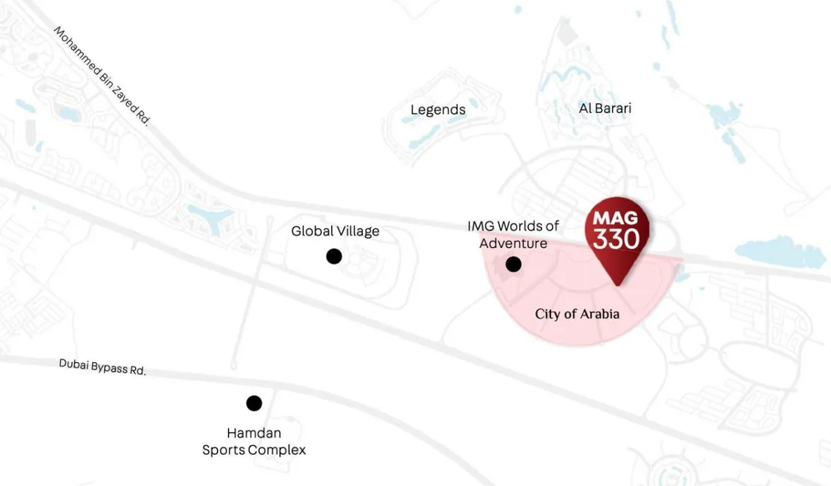 As a prestigious residential landmark in the heart of Dubailand, and with ease of access to the main road, MAG 330 will connect you to all the major entertainment, leisure and adventure destinations across Dubai.